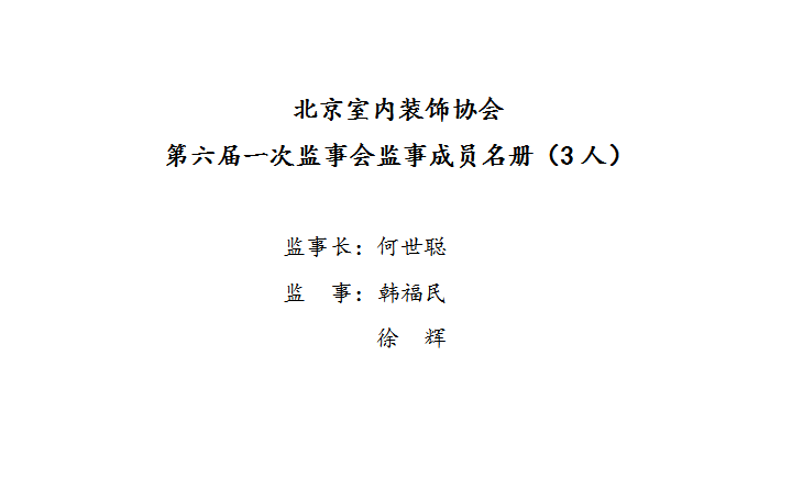 北京室内装饰协会第六届一次监事会监事成员名册